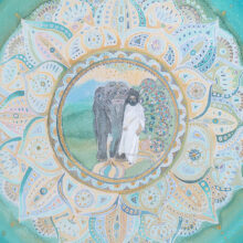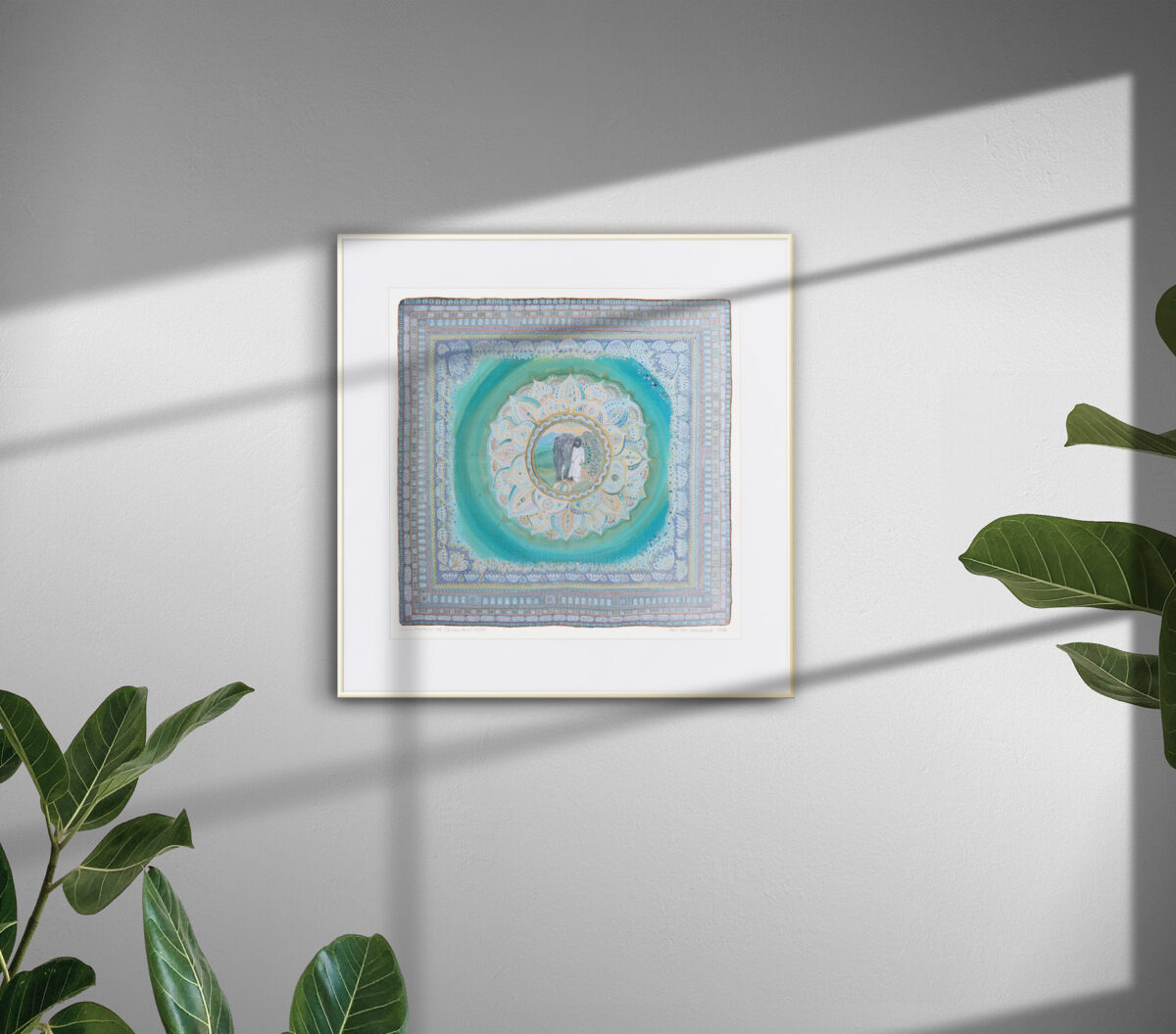 The artwork is painted on silk and printed with archival pigment print on cotton paper. Limited edition prints are numbered and signed.